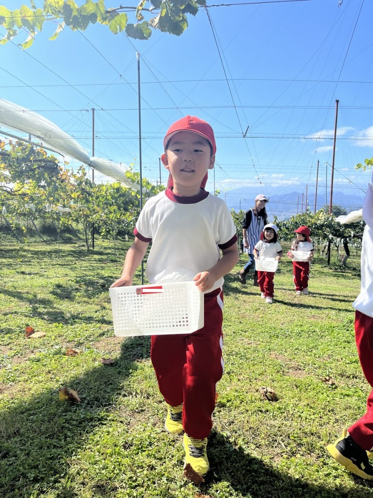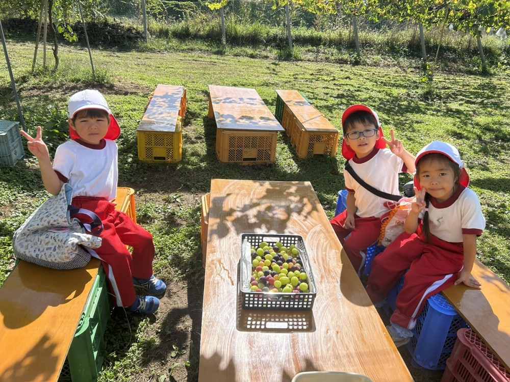 最初は、さくら組さんにズームイン。10/10のぶどう狩りの様子です。ひたすらブドウを食べているお友だち。虫探しに夢中になっているお友だち。お土産のブドウをひたすら選んでいるお友だちなどなど・・・。楽しみ方はひとそれぞれ。秋の楽しみ方もひとそれぞれ。それぞれが季節をかんじられたかなぁ。